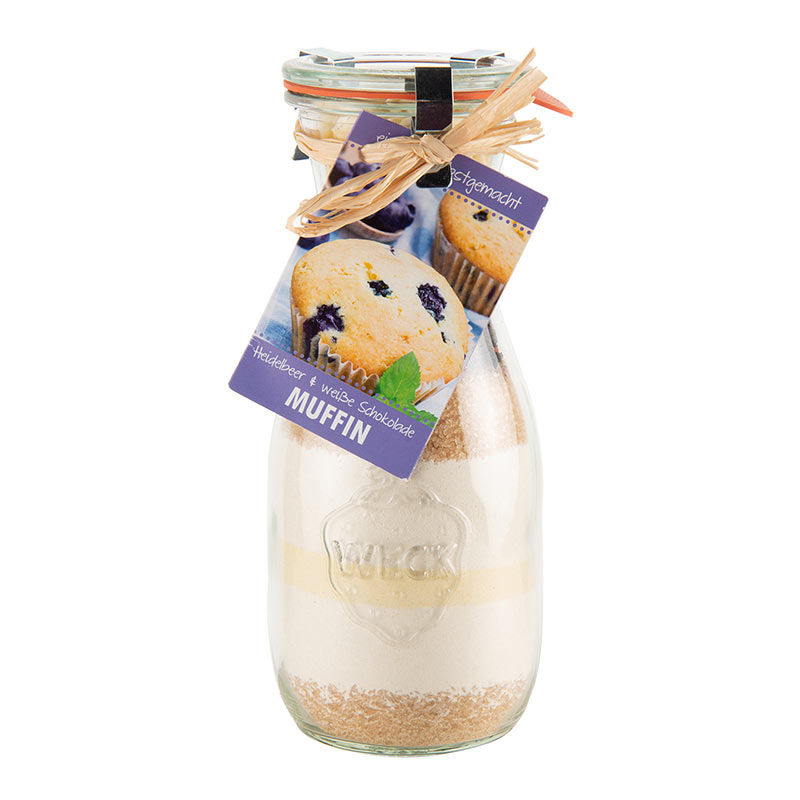 Du möchtest feine, luftige Muffins backen und sie danach verschenken? Dann ist die Backmischung Heidelbeer und weisse Schokolade Muffins im Weckglas genau das richtige für dich. Ohne grossen Aufwand zauberst du süsse Muffins auf den Tisch. Oder du verschenkst gleich die ganze Backmischung, die im schönen Weckglas ein besonders tolles Geschenk hergibt. Das qualitativ hochstehende Weckglas lässt sich danach wunderbar für den Transport und die Aufbewahrung von Lebensmittel verwenden.