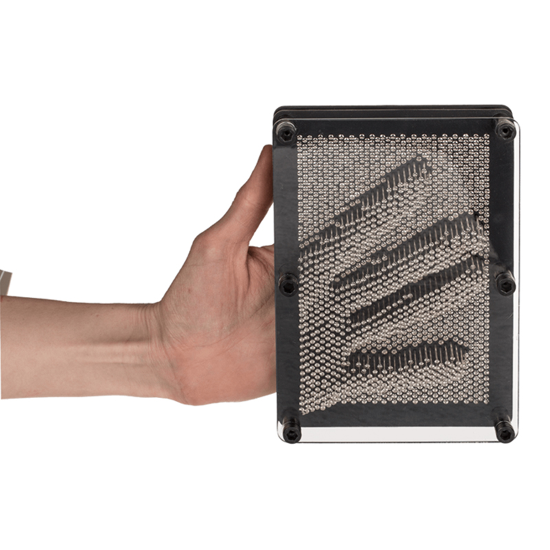 Du willst einmal einen witzigen 3D-Abdruck deines Gesichtes, deiner Hand oder einem anderen Gegenstand machen ohne viel Geld und Mühe aufwenden zu müssen? Dann ist das Pin Art Nagelspiel perfekt für dich! Dabei drückst du den Gegenstand in die Pins hinein, sodass ein Abdruck entsteht und ziehst dieses dann vorsichtig wieder heraus: Schon hast du einen Abdruck, den du dir aufstellen kannst. Dieses Nagelspiel eignet sich für alle Altersklassen und verspricht immer wieder neuen Spass, da man den gemachten Abdruck jederzeit wieder verschwinden lassen kann und neue Formen ausprobieren kann. Willst du deinen Abdruck für längere Zeit behalten, stellst du das Pin Art Nagelspiel senkrecht auf, sodass die Pins nicht verrutschen können.