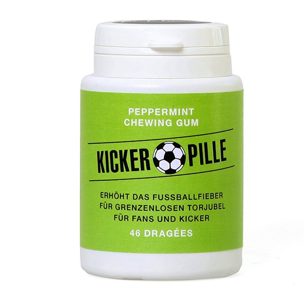 Du bist ein echter Fussballfan oder spielst selbst in einer Mannschaft mit? Dann brauchst Du dieses leckere Kaugummi. Das Kicker Kaugummi ist für alle Fans und Fussballer gedacht, die gerne mit frischem Atem jubeln wollen. Dieses Produkt besteht aus leckerer Pfefferminze, sodass Du Dir sicher sein kannst, dass Du mit einem frischen Geschmack im Mund am lautesten Deine Mannschaft anfeuern kannst. Ein besonderes Highlight bei diesem Kaugummi sind auch die hochwertigen Inhaltsstoffe. So sorgt Xylit als Ersatzstoff dafür, dass Du eine angenehme Süsse spürst und dabei Deine Zähne nicht angegriffen werden.