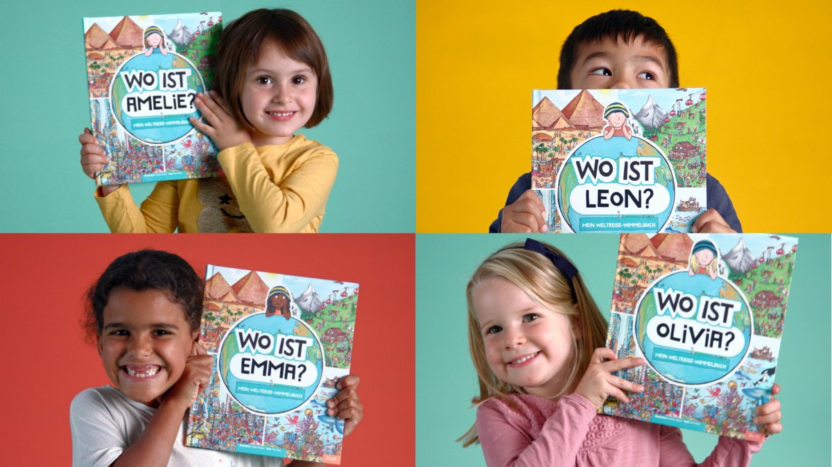 Das Kinderbuch ist ein ganz besonderes Geschenk für alle kleinen Helden und Heldinnen, die gerne selbst die Hauptrolle in ihren Geschichten spielen. Im Weltreise-Wimmelbuch ist das beschenkte Kind die Hauptfigur und geht auf eine bunte und anschauliche Weltreise. Nicht nur der Name der Hauptfigur, sondern auch ihr Aussehen kann in diesem spannenden Abenteuer bestimmt werden, das die Kinder fantasievoll durch 10 bekannte Reisedestinationen führt. Auch Kleidung und Sprache der Hauptfigur können ausgewählt werden und machen die Weltreise zu einem authentischen und interaktivem Erlebnis, das Kinderherzen höher schlagen lässt. Das Wimmelbuch besteht aus 24 Seiten und ist als Hardcover erhältlich. Und damit nicht nur die Kinder, sondern auch die Umwelt sich freuen, wird das Kinderbuch aus 100 % recyceltem Papier hergestellt.