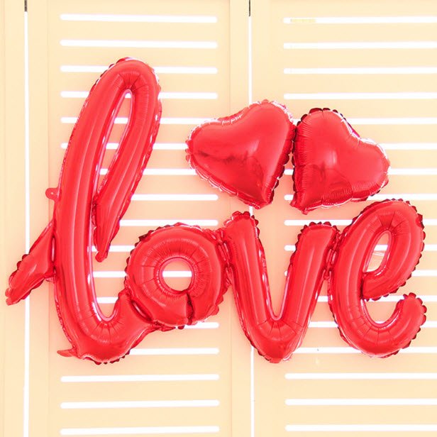 Folienballon Schriftzug Love inkl. zwei Herzen