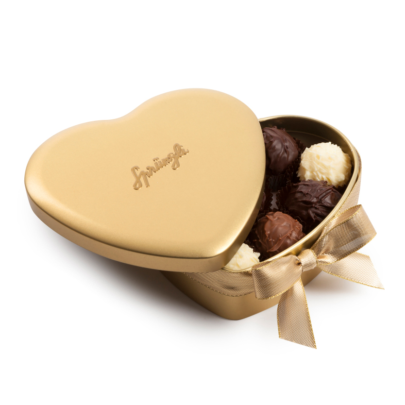Herz-Dose mit Sprüngli-Frischrahmtruffes, 10 Stück