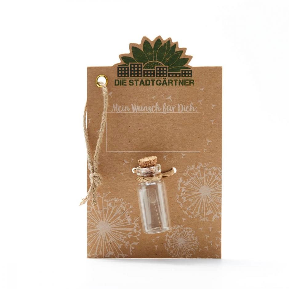 Willst du einem lieben Menschen etwas Gutes wünschen oder bist du auf der Suche nach einer Alternative zu Grusskarten? Dann ist der kleine Wunscherfüller im Glas das richtige Geschenk, um einen Wunsch zu verschenken. Dank dem kleinen Wunscherfüller im Glas musst du nicht mehr stundenlang auf einer Blumenwiese nach Löwenzahn Ausschau halten und die Pusteblumen auspusten, sondern kannst ganz unkompliziert einen Wunsch verschenken, als Geburtstagsgeschenk, zur Hochzeit, als Glücksbringer oder einfach so.