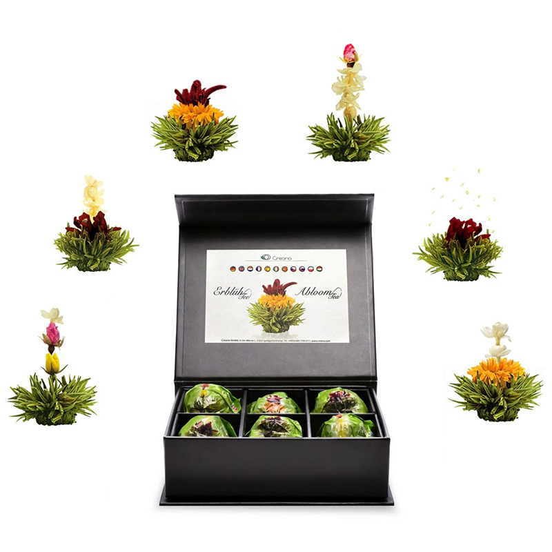 Mache den Teegenuss zu einem unvergesslichen Erlebnis. Mit dieser Erblühtee Geschenkbox Grün Tee hast du ein schönes Geschenk für jeden Teeliebhaber. Dank der sensationellen Blüte, die aus jeder Erblühteekugel wächst, wird ein leckerer Tee auch zum Augenschmaus. Mit den spektakulären Erblühtee Kugeln gewinnt der Teegenuss eine eindrucksvolle, optische Komponente dazu. In aufwändiger Handarbeit werden die Kugeln gebunden und geben erst in einem Gefäss voll kochendem Wasser ihr Geheimnis preis.
