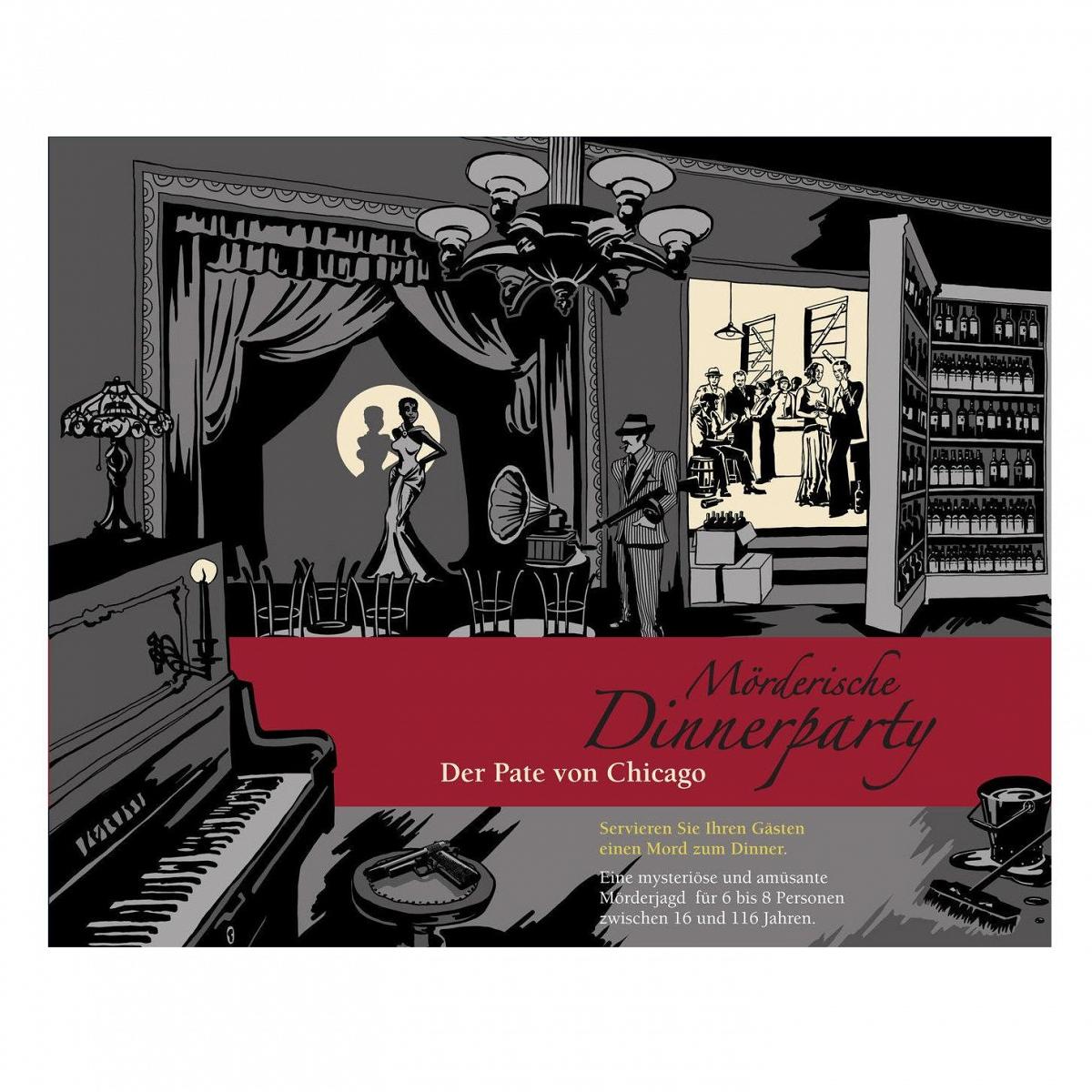 Lade deine Gäste zu einer "mörderischen" Dinnerparty ein mit Ausnahmecharakter… Löst gemeinsam das atemberaubende Rätsel "Der Pate von Chicago" und taucht ein in eine nervenkitzelnde interaktive Mörderjagd, in der ihr euch garantiert verlieren werdet! Zusammen reist ihr in das Jahr 1931 nach Chicago, USA und begebt euch in die Welt der Mafiosi. 1931 waren schlechte Zeiten für die Mafia, denn Präsident Roosevelt plant, die Prohibition abzuschaffen und somit das lukrative Geschäft der Gangster zu verhunzen. Angesichts der heiklen Lage verbünden sich die verfeindeten Clans der Calzone und Linguine. Doch auf einmal wird der mächtige Pater Angelo, der Beichtvater der beiden Familien, ermarbmungslos von einer Maschinengewehrsalve durchsiebt. Eines ist klar: die klaren Hinweise deuten auf ein Mitglied der Cosa Nostra. Findet ihr den Mörder oder kommt er euch davon? überrasche deine Freunde oder Familie bei der nächsten Essenseinladung mit einem aussergewöhnlichen Highlight und begeistere sie mit einem spannenden Krimidinner. Weise deinen Gästen im Vorfeld des Dinners eine Rolle zu, in die sie zu schlüpfen haben. Rätselt zusammen, geniesst das edle Dinner auf Basis der Menüvorschläge, lacht und lasst euch auf das dramatische Abenteuer ein!