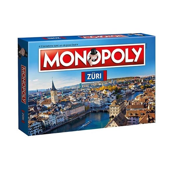 Der Kultspielklassiker Monopoly präsentiert sich in dieser Edition "Züri" in einem ganz neuen Design und ist nicht nur für Fans der vielleicht schönsten Stadt der Schweiz ein echtes Muss. Geeignet für Kinder ab 8 Jahren bietet die Monopoly Züri Version auch jede Menge Spielspass für die ganze Familie. Zürich, die grösste Stadt der Schweiz, liegt am nördlichen Ende des lang gezogenen Zürichsees und schmiegt sich an die Abhänge zweier Hügelketten. Mit dem Fluss Limmat verlässt das Wasser quasi mitten in der Stadt den Zürichsee und die aus einem Seitental kommende Sihl, die sich unterhalb des Hauptbahnhofes mit der Limmat vereinigt, teilt die Stadt in verschiedene Viertel. Doch siehe für dich selber und gehe auf eine unterhaltsame Entdeckungsreise mit diesem Monopoly!