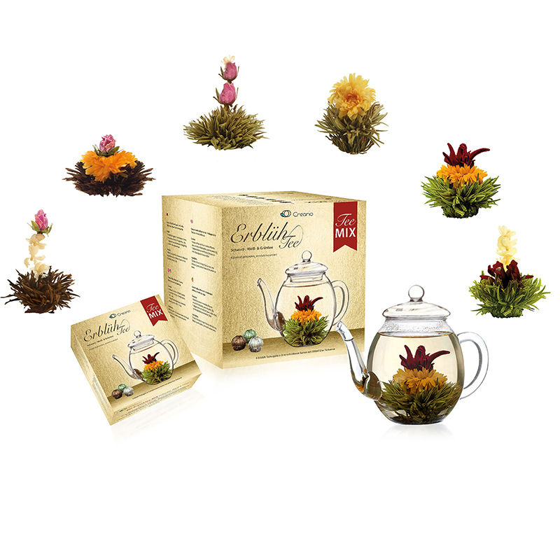 Geschenkset ErblühTee Creano TeeMix 6er Box mit Glaskanne