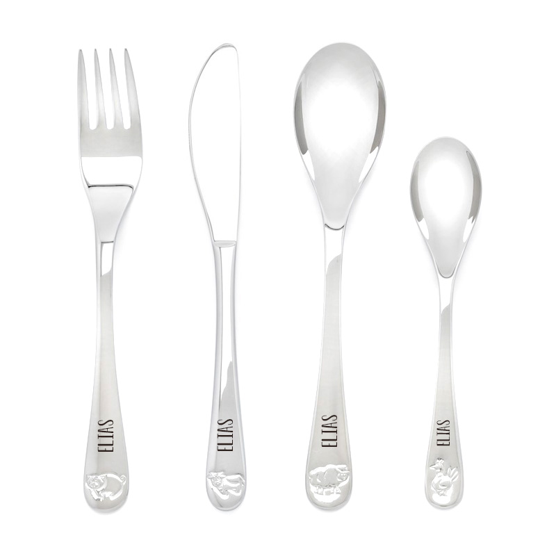 Möchte dein Kind auch stets wie die Erwachsenen am Tisch mitessen? Mit diesem Set kann dein Kleiner nämlich fleissig üben, das Essen richtig zu aufzugabeln und zu verschmausen. Dank den abgerundeten Kanten, besteht keine Gefahr sich zu verletzen. Mit den süssen Motiven ist jedes Kind gut beschäftigt und ruhig am Tisch. Ein individueller und beliebter Geschenke-Klassiker!
