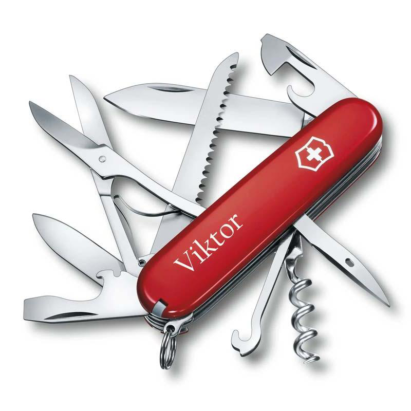 Die bekannten Victorinox Taschenmesser hier mit individueller Personalisierung! Damit bist du für jegliche Situation bestens ausgerüstet. Mit dem Huntsman Sackmesser hast du praktische integrierte Werkzeuge, die dir den Alltag erleichtern und auch auf Reisen das Leben vereinfachen. Klein, vielfältig und qualitativ hochwertig!