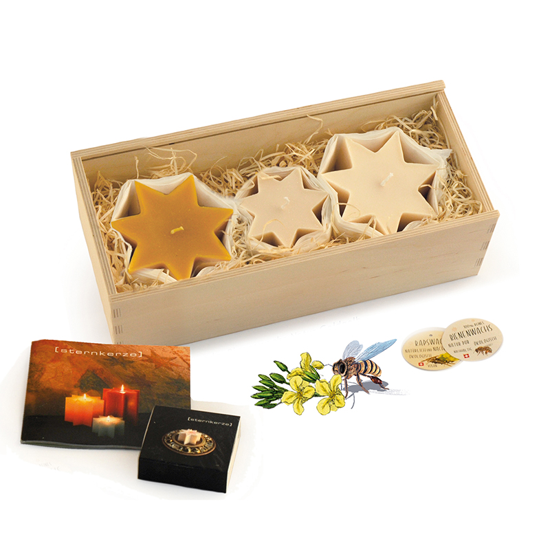 Sternkerze Rapswachs&Bienenwachs 3er Geschenkbox