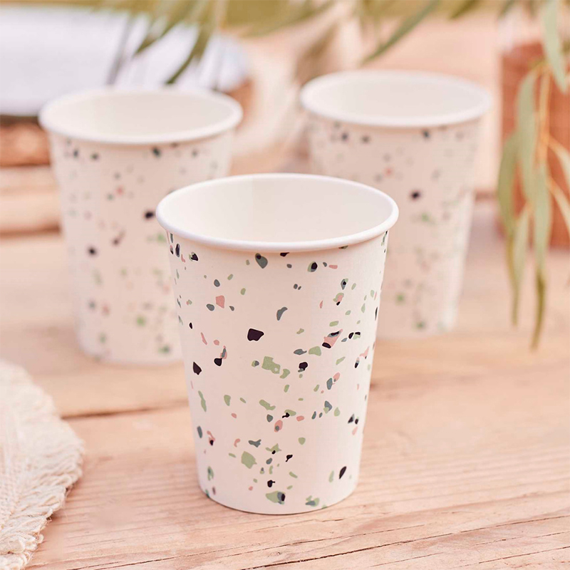 Gestalte eine stilvolle Party mit den Partybecher Terrazzo. Das Beste daran ist, dass die Becher umweltfreundlich sind und keine schädlichen Oberflächen haben. Jede Packung enthält 8 x Terrazzo Partybecher.