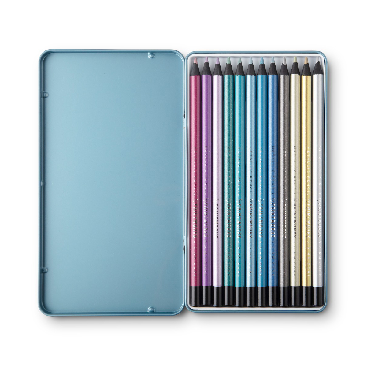 Magnifique boîte alu et crayons dans une belle gamme de coloris. Génial pour réhausser les dessins au crayon classique, effet subtil de lumière.