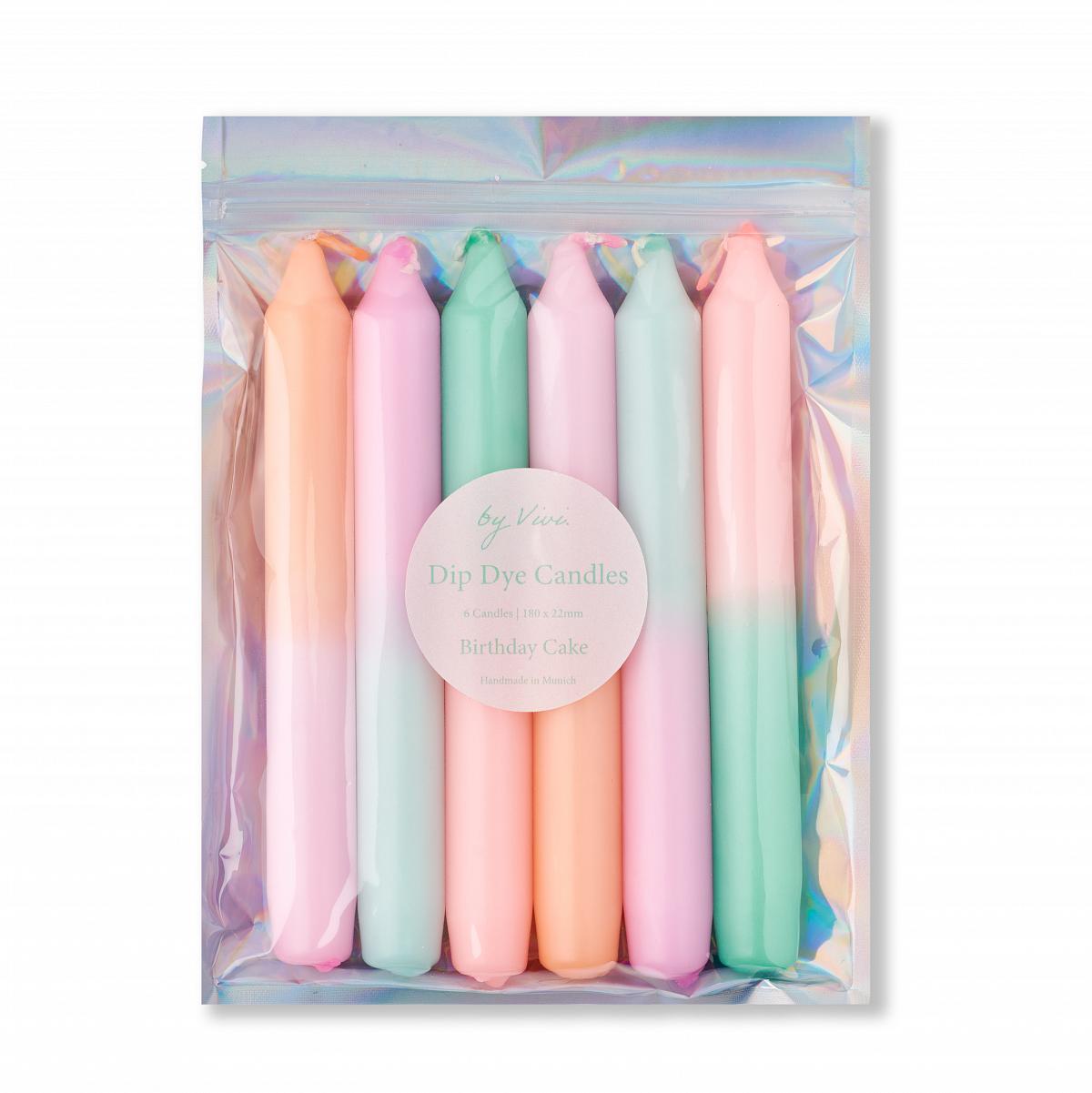 Das Kerzen-Set Birthday Cake ist ein tolles Geschenk für jede Gelegenheit. Die handgefärbten Dip Dye Kerzen werden mit viel Liebe in München hergestellt und sind echte Unikate. Jede Kerze hat ihren eigenen Farbverlauf. Das Set besteht aus 6 Kerzen mit einer Brenndauer von jeweils ca. 6,5 Stunden. Die Kerzen werden in einer wiederverwendbaren Verpackung geliefert und sind ein perfektes Mitbringsel.