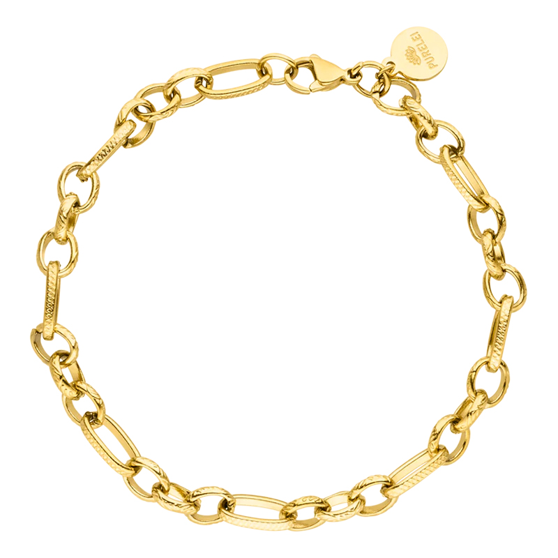 Mit dem Purelei Armband Fashion Show Gold liegst du voll im Trend. Das grobe Armband besticht durch sein zeitloses Design und die matten Oberflächen-Schraffuren, wodurch es nicht zu klobig wirkt und angenehm auf deiner Haut liegt. Ein weiteres Highlight: Durch die vielen Glieder kannst du es individuell anpassen und perfekt für Layering-Looks verwenden!