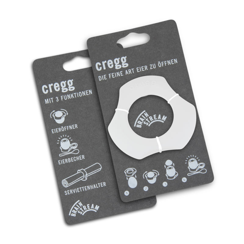 Der ringförmige Cregg Eierschalenschneider & Eierbecher ist ein vielseitiges Küchenwerkzeug. Mit seinen drei Einkerbungen für einen besseren Griff dient er als Eierschalenschneider. Im Inneren befinden sich Schneiderollen, um die Eierschale mühelos zu zerschneiden. Zusätzlich kann der cregg als Eierbecher und Serviettenring verwendet werden. Ein praktischer Helfer für das Frühstücksei.