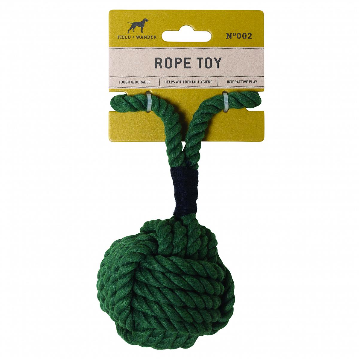 Verwöhne deinen Hund mit einem neuen Kauspielzeug, dem Seil-Hundespielzeug von Field + Wander. Dieses runde Spielzeug mit Affenfaustknoten macht Spass beim Ziehen, Werfen, Apportieren und Kauen und eignet sich daher ideal für Spielzeit drinnen und draussen.