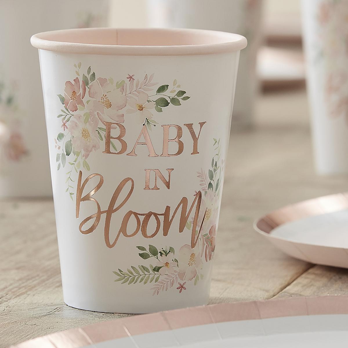 Baby Shower Becher - Roségold, Floral