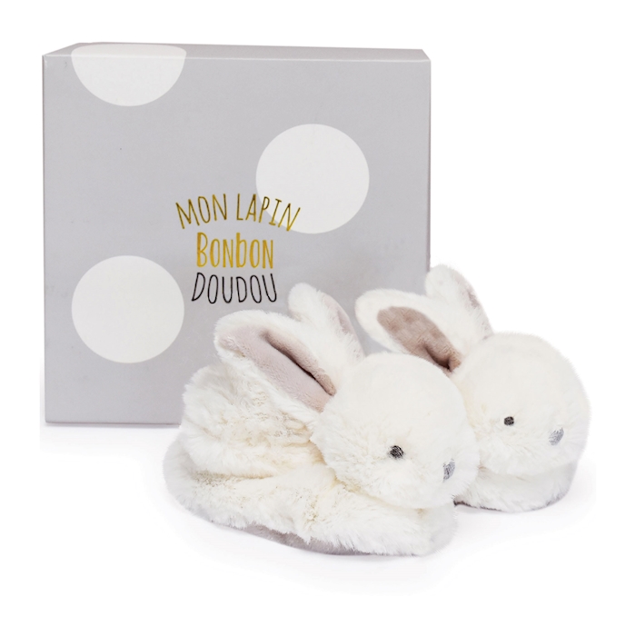 Doudou Bonbon Hase Füsslinge mit Rassel, taupe 0-6M