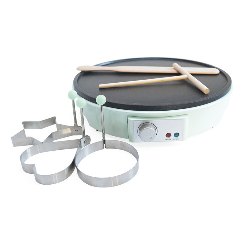 Mit der Crêpes Factory Maschine kannst du ganz einfach Pfannkuchen mit einem originellen und kreativen Design zubereiten. Die Antihaftbeschichtung sorgt dafür, dass die Crêpes jedes Mal glatt und perfekt gelingen. Die Maschine wird mit 2 Holzutensilien und 3 fantasievollen Formen geliefert: einem Stern, einem Herz und einer runden Form. Damit kannst du deiner Fantasie freien Lauf lassen und individuelle Crêpes zaubern.