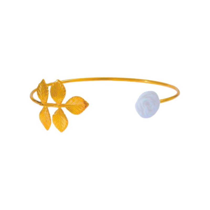 Du wirst von diesem bezaubernden Rose Feuille-Armband begeistert sein! Es verkörpert klassische Eleganz und strahlt zugleich in leuchtendem Glanz. Dieser feine Armreif, auf dem ein goldenes Blatt auf die Porzellanblume trifft, passt perfekt an dein Handgelenk und verleiht deinem Look eine einzigartige Note.