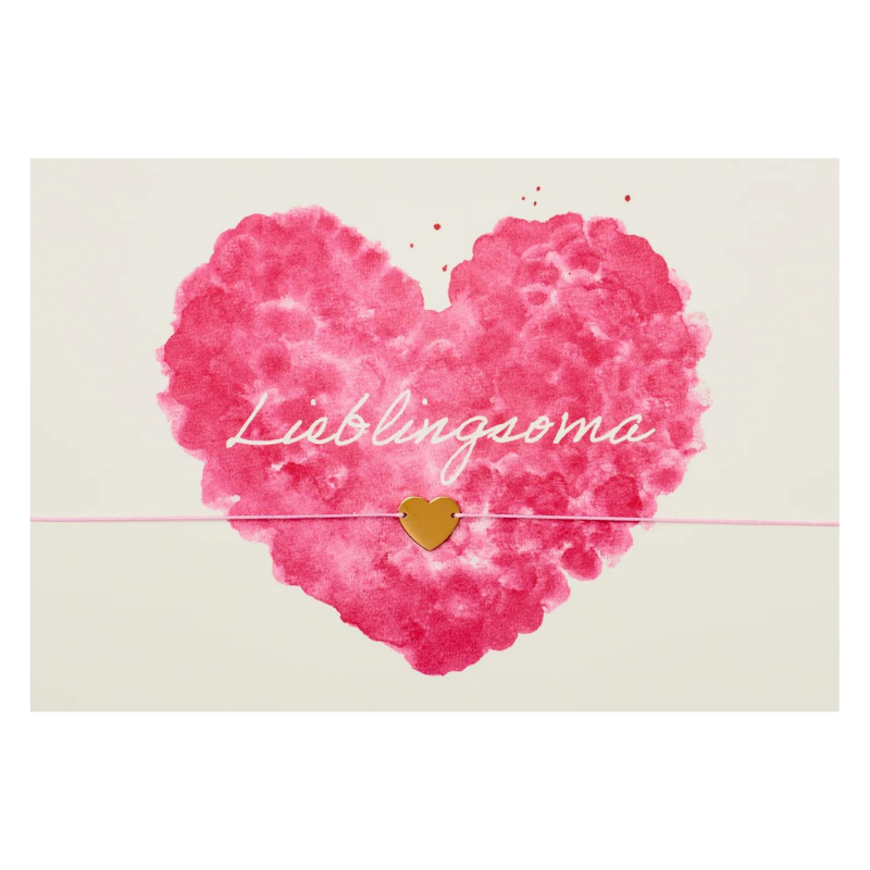 überrasche deine geliebte Oma mit dem "Lieblingsoma" Armband von By Vivi und zeige ihr, wie besonders sie für dich ist. Die Karte präsentiert ein strahlendes Herz als 18K vergoldeten Anhänger an einem charmanten rosafarbenen Armband. Dieses Geschenk ist eine zärtliche Art, deine Wertschätzung für deine Oma auszudrücken und eure einzigartige Verbindung zu betonen.