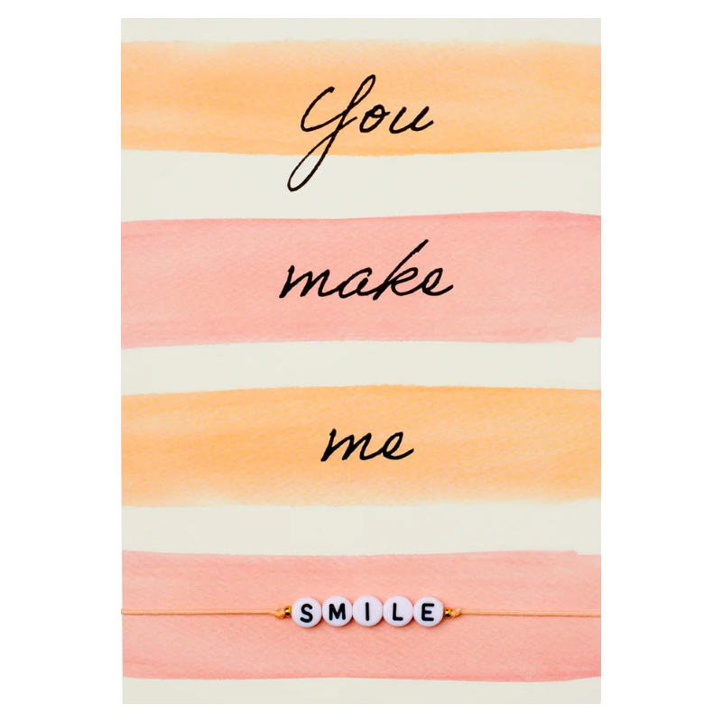 Mit dem "Smile" Armband von By Vivi kannst du deiner besten Freundin auf eine besondere Art und Weise sagen, wie wichtig sie für dich ist. Die Karte kommt mit dem Schriftzug "Smile" aus Acrylperlen und einem charmanten 18K vergoldeten Stern an einem lachsfarbenen Armband. Dieses Geschenk ist eine herzliche und persönliche Geste, die eure Freundschaft feiert und die Verbindung zwischen euch stärkt.