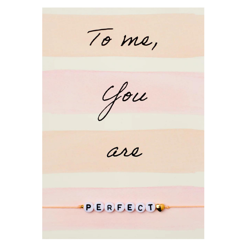 Mit der "PERFECT" Weihnachtskarte von By Vivi kannst du nicht nur zur Weihnachtszeit, sondern das ganze Jahr über Freude verschenken. Diese besondere Karte kommt mit einem Schriftzug "PERFECT" aus Acrylperlen und einem eleganten 18 Karat vergoldeten Herz an einem lachsfarbenen Armband. Sie verleiht jedem Anlass eine liebevolle und bedeutungsvolle Note.