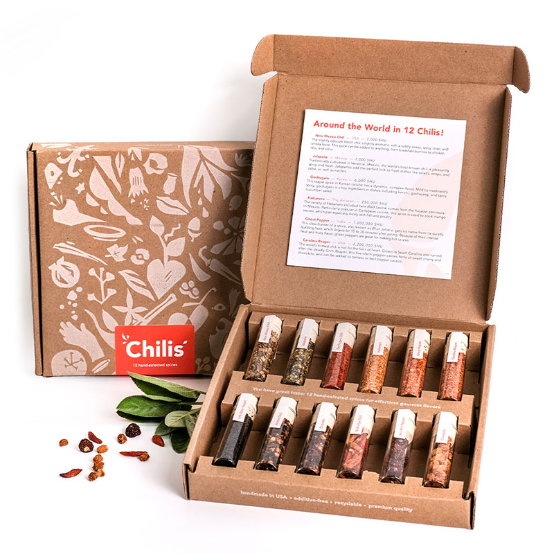 Explorer Chili Set mit 12 Gourmet-Chilis von mild bis scharf - Geschenkidee für Chili-Fans: Ein aussergewöhnliches Chili-Geschenk für alteingesessene Schärfe-Liebhaber und neugierige Geniesser. Mit 12 verschiedenen Sorten zeigen wir, was Chili wirklich kann - von mild bis feurig scharf ist alles dabei. Verpackt in schmucken Reagenzgläsern aus Glas mit kompostierbarem Korken überzeugt das Set mit Aussehen und Umweltbewusstsein.