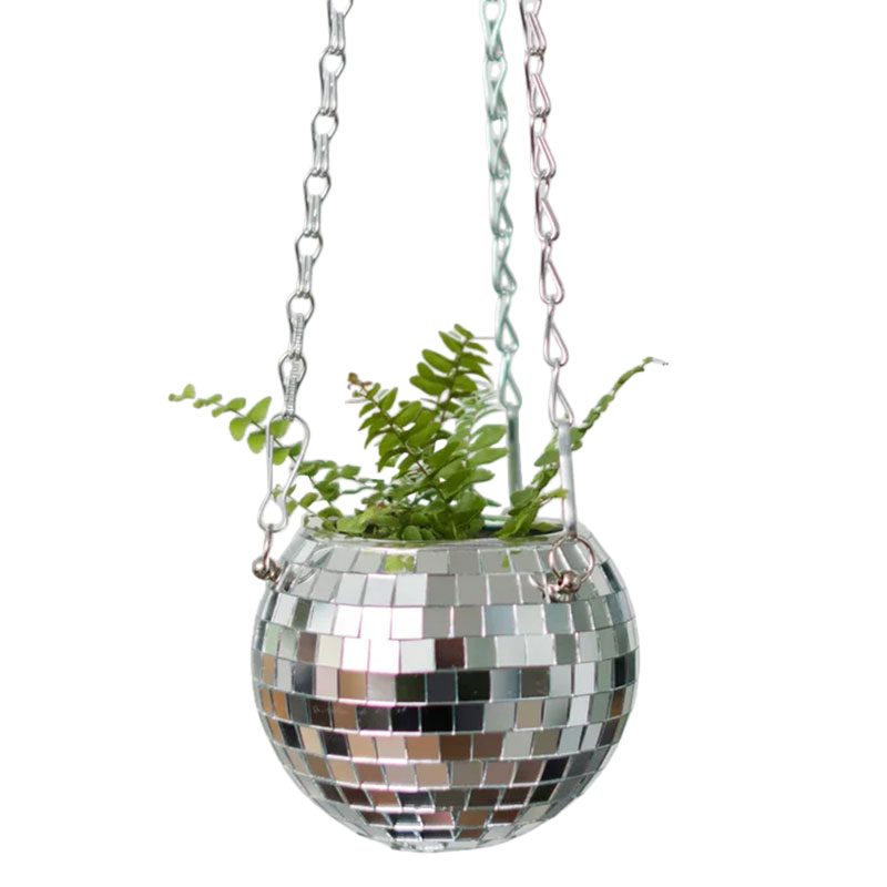 Mit dem Disco Kugel Blumentop bist du der perfekte Zimmergärtner für Disco-Liebhaber. Der Blumentopf beinhaltet eine Kette und einen Holzring, um ihn entweder aufzuhängen oder hinzustellen. Diese originalgetreue Replica einer Diskokugel aus den 80er Jahren verleiht deinen Pflanzen einen einzigartigen Retro-Look.