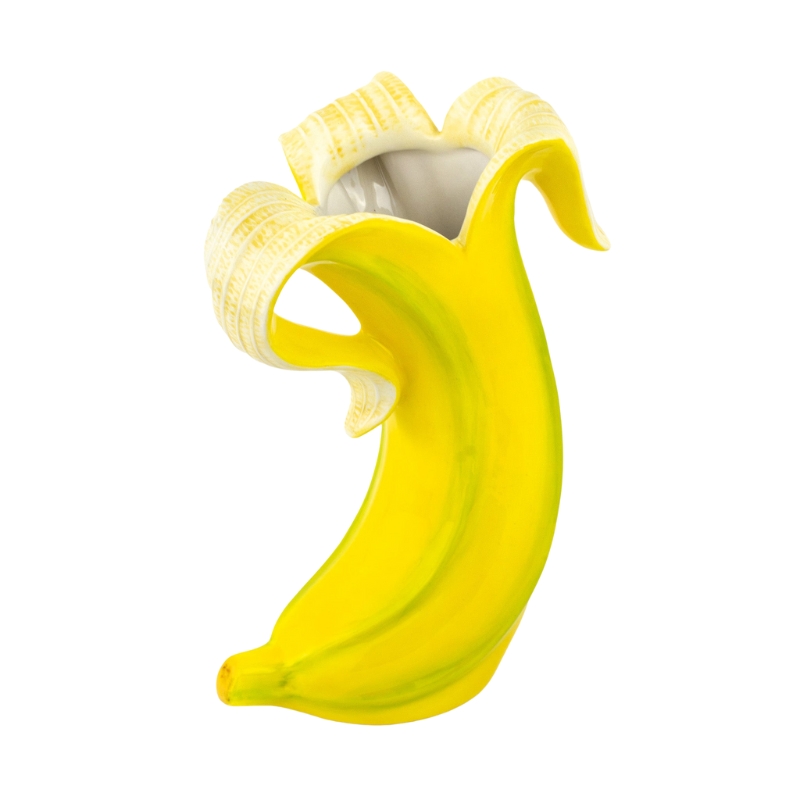 Tauche ein in die gelbe Fruchtwelt mit unserer aufregenden Bananenkollektion! Die Bananen-Vase ist nicht nur ein einfacher Blumenhalter, sondern ein wahres Kunstwerk aus hochwertiger, handbemalter Keramik. Diese einzigartige Vase in Form einer Banane bringt nicht nur Spass und Freude, sondern ist auch ein praktisches Gefäss für deine Lieblingsblumen.