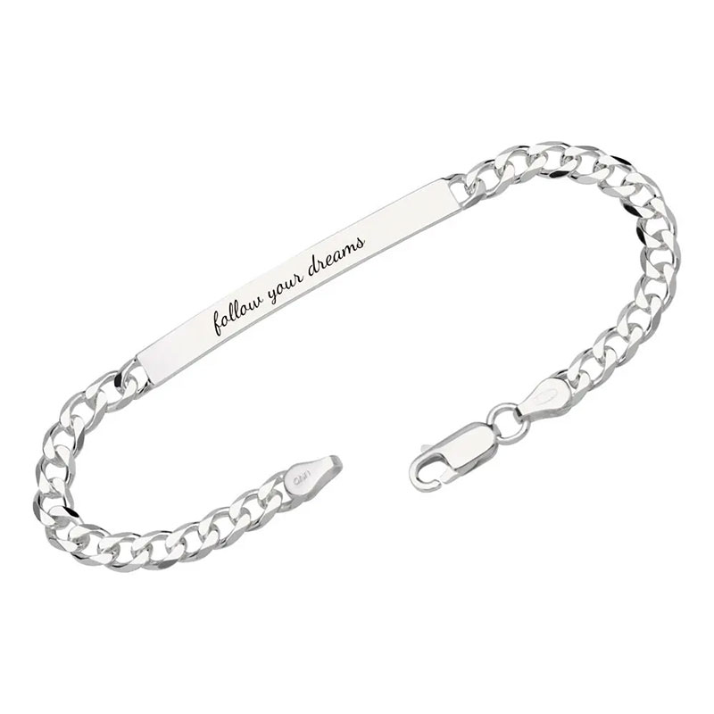 Das personalisierbare Partner 925 Silber Armband ist ein exklusives Accessoire aus echtem Sterlingsilber. Das Panzerarmband hat eine Breite von 4,5 mm und eine Gravurplatte, die mit deinen Wunschinformationen graviert werden kann, wie zum Beispiel einem Namen oder Datum. Das Armband ist mit edlen Endeinfassungen und einem hochwertigen Karabinerverschluss in Juweliersqualität ausgestattet.