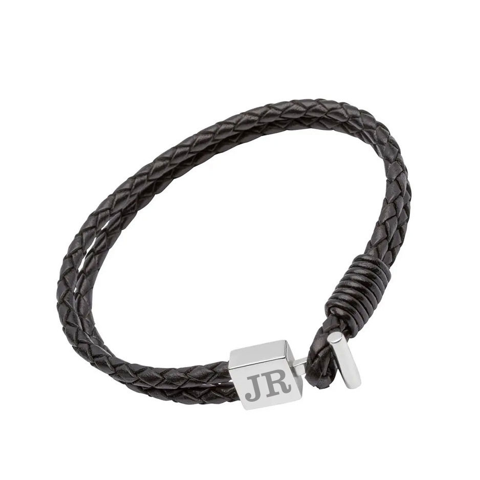 Das personalisierbare Lederarmband mit Steckverschluss ist ein exklusives Accessoire aus doppelreihigem schwarzem Leder. Du kannst das Armband mit einer individuellen Gravur auf dem Verschluss versehen lassen.