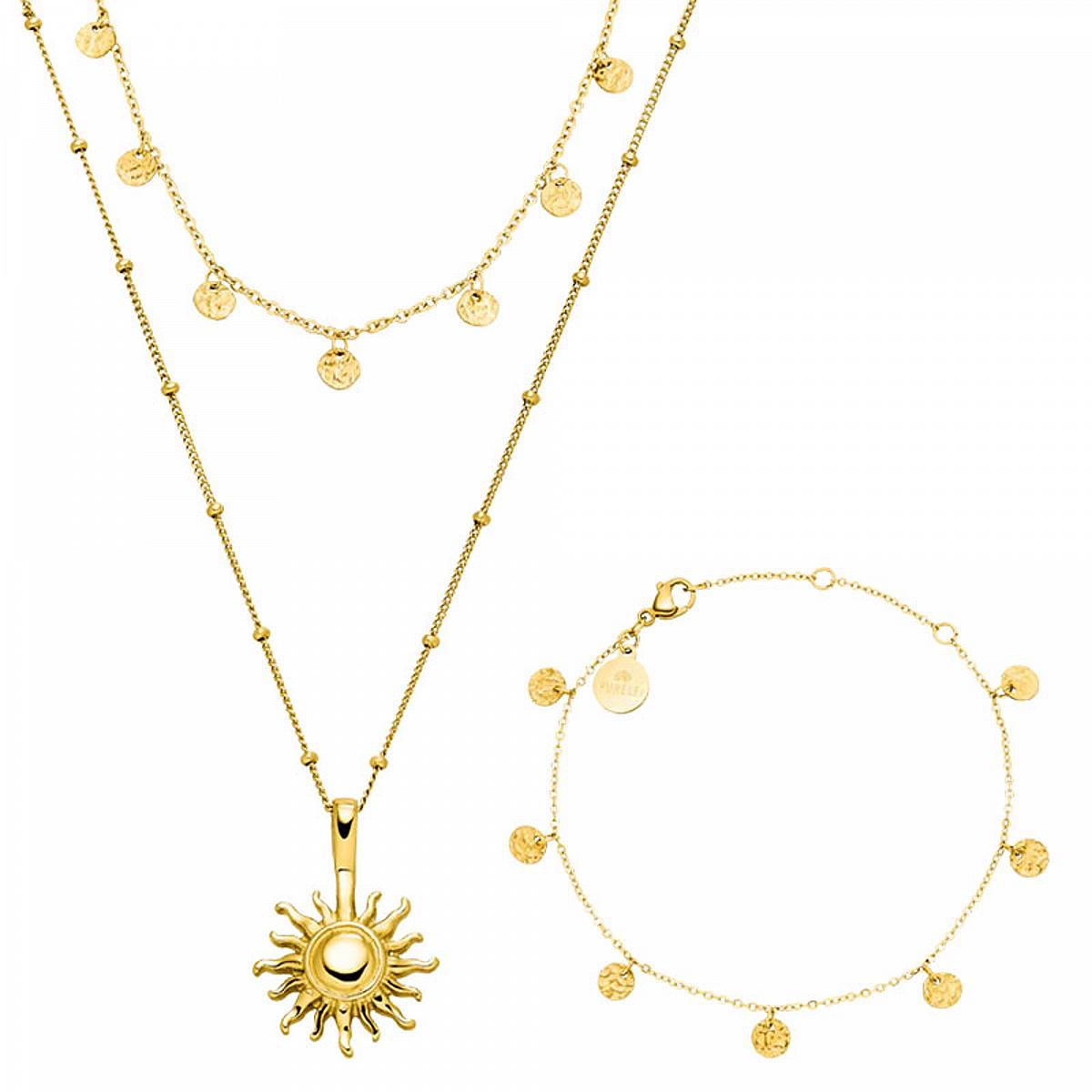 Purelei Sun Schmuckset mit 2 Halsketten und 1 Armband, gold