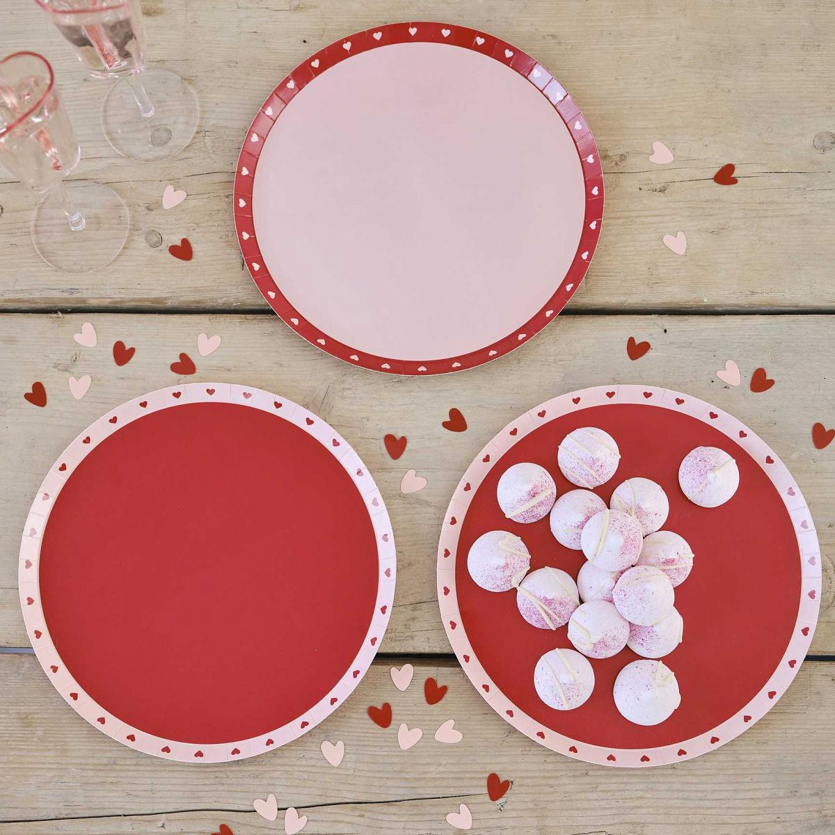 Serviere süsse Leckereien für einen besonderen Menschen mit diesen Valentinstag Herz Pappteller in Rot und Rosa. Diese Pappteller sind perfekt für ein romantisches Picknick. Kombiniere sie mit anderen Tischdekorationen zum Valentinstag und erleihe einer besonderen Mahlzeit eine romantische Note mit diesen herzigen Tellern.
