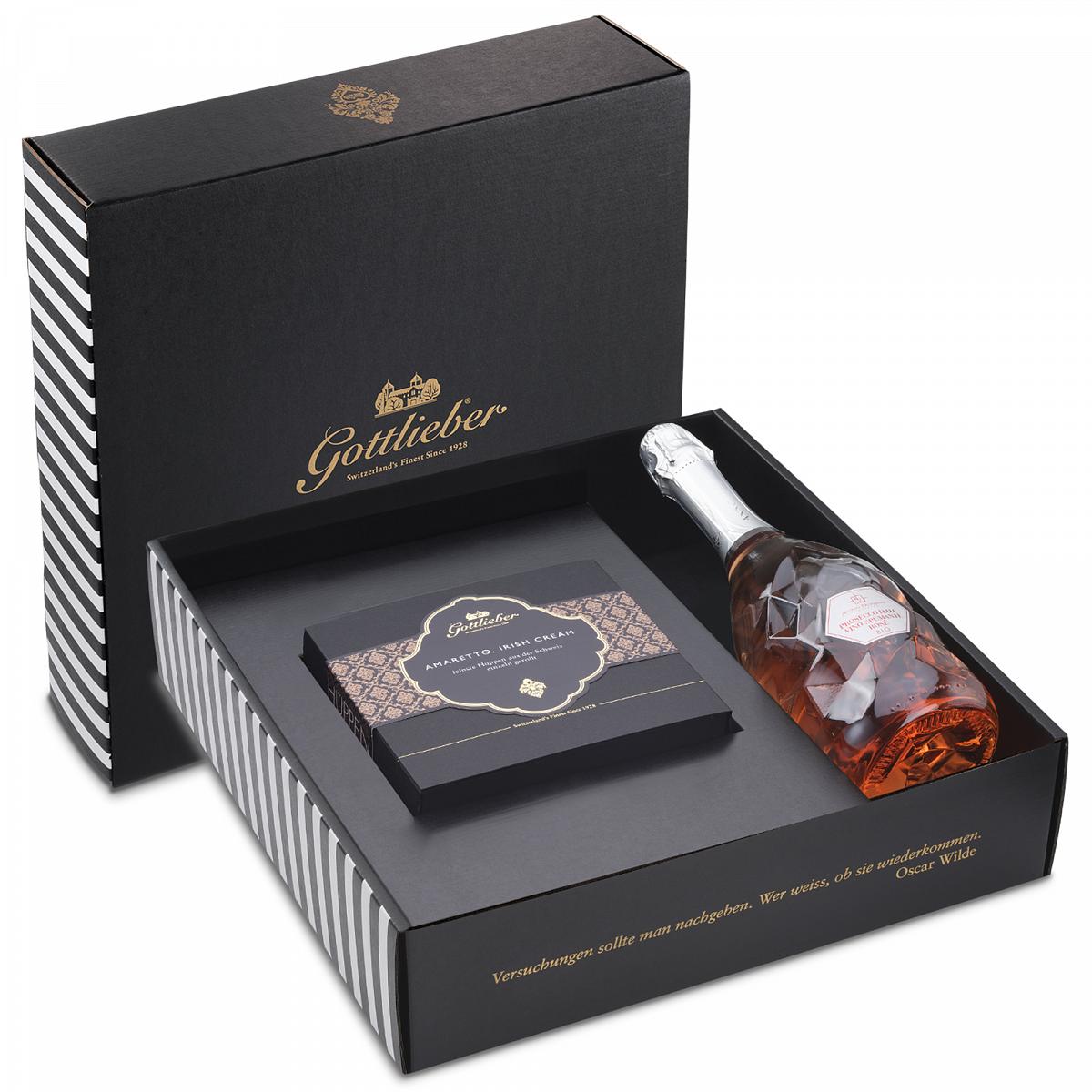 - Edles Geschenkset mit Bio-Prosecco Rosé und feinen Amaretto- & Irish-Cream-Hüppen
