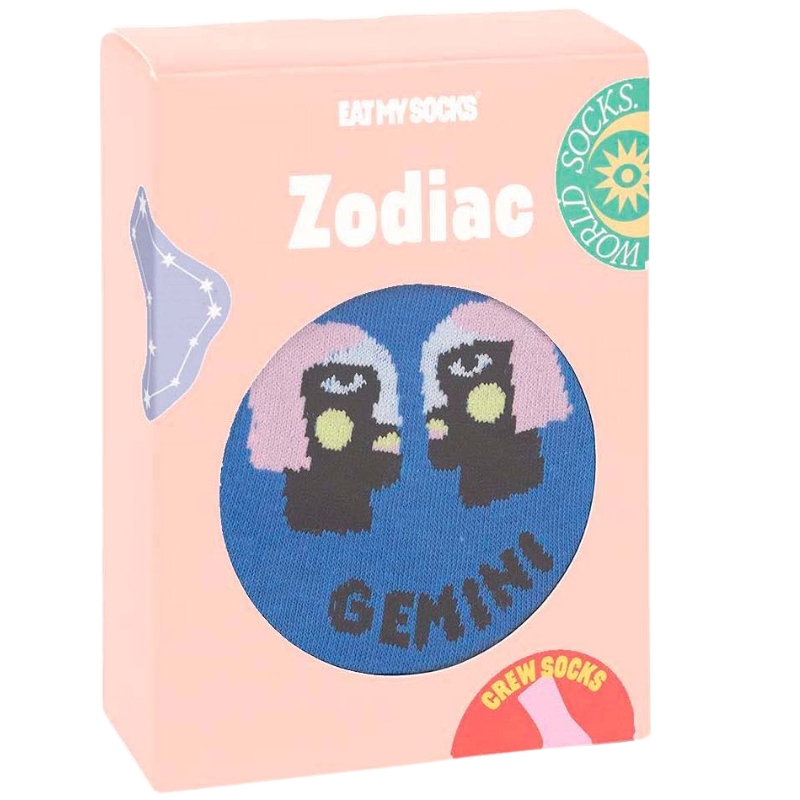 Zeig deine Verbundenheit zum Sternzeichen Zwilling mit den originellen EatMySocks - Sternzeichen Socken, Zwilling. Dieses trendige, farbenfrohe Sockenpaar wird in einer coolen Geschenkbox geliefert und ist ein ausgefallenes Geschenk für jeden Anlass. Diese Socken sind nicht nur bequem und warm, sondern auch ein echter Hingucker an deinen Füssen.
