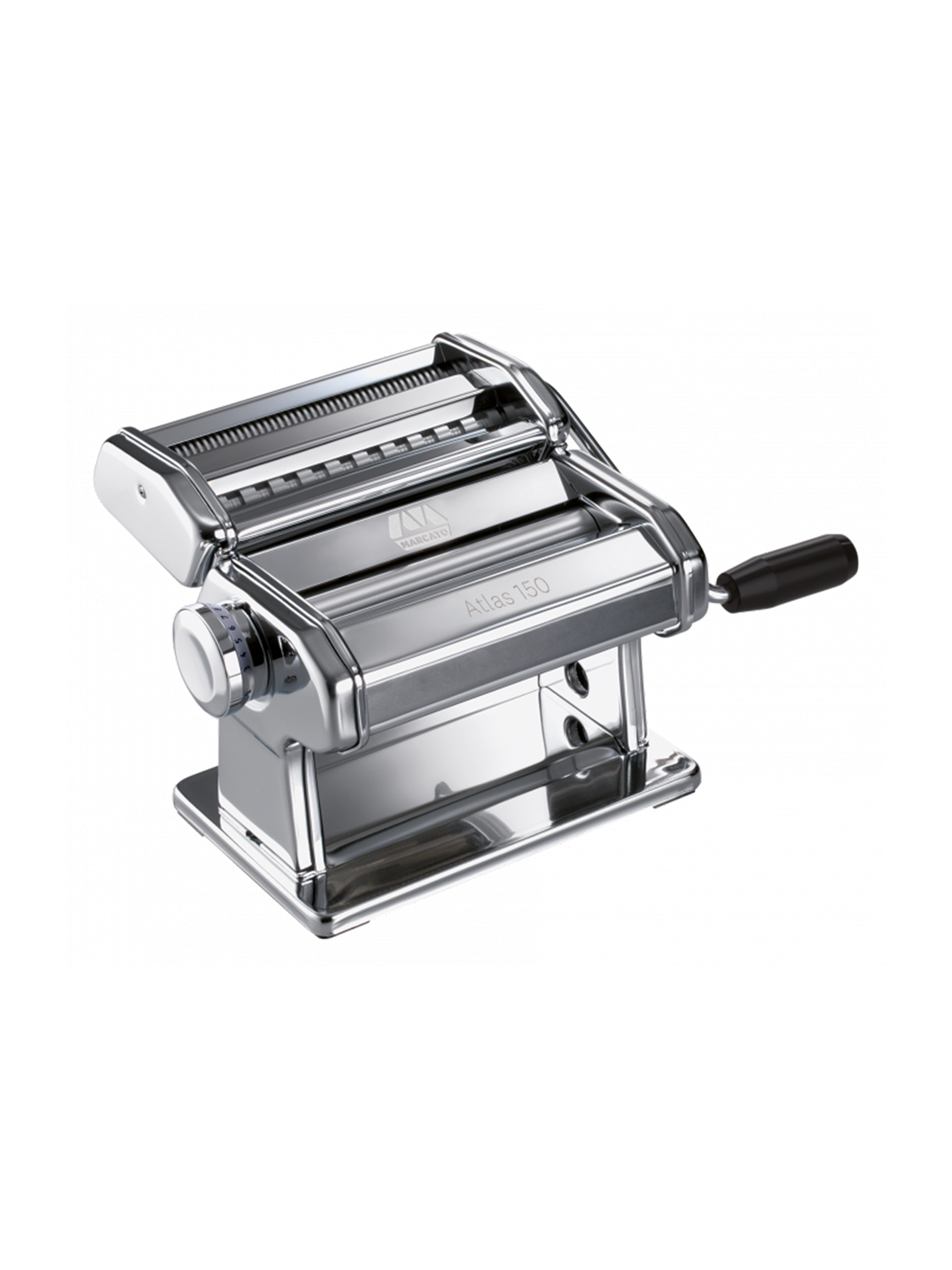 - Atlas 150 Classic Nudelmaschine zur Herstellung von drei Arten frischer Nudeln: Lasagne (Dicke einstellbar von 0,6-4,8 mm), Fettuccine (6 mm) und Tagliolini (1,5 mm)