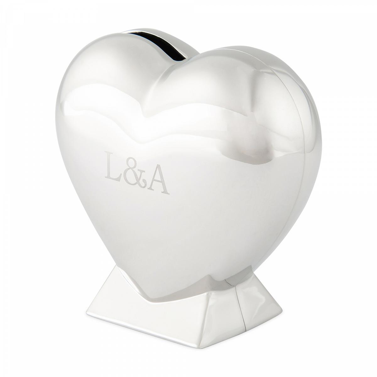 In dieser wundeschönen silbernen Spardose in Herzform sind deine Ersparnisse ganz besonders gut aufgehoben. Der silbern glänzende Finish geben dem Kässeli einen edlen Touch, während du es personalisiert mit einer Gravur einen ganz besonderes Geschenk verwandelst. Ideal geeignet für Hochzeiten oder als überraschung besonders geliebte Menschen.