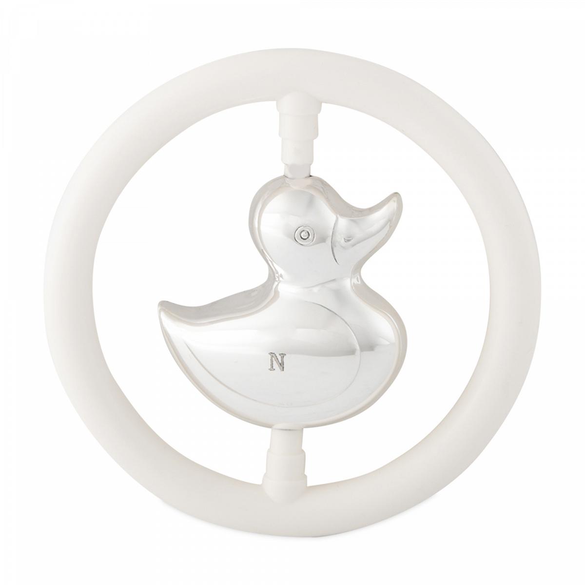 Personalisierbarer Beissring mit Rassel Ente, B90 versilbert