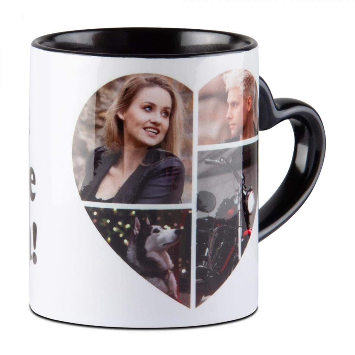 - Personalisierbarer Herztasse in Schwarz mit Foto