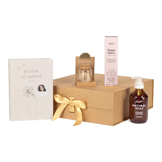 Mit der Geschenkbox Live your dreams werden Träume wahr. Die Geschenkbox enthält ein Journal – ein Must-Have für Träumer, Planer und Kreative. Der Wunscherfüller "Pusteblume im Glas" ist das ideale Geschenk, um einen Wunsch zu verschenken. Mit der Pusteblume kannst du einfach und unkompliziert einen Wunsch verschenken. Die Flüssigseife der Zürcher Marke Soeder ist Bio und swissmade. Eine schöne Geschenkidee für alle, die etwas mehr Achtsamkeit in Ihrem Alltag einbauen möchten.