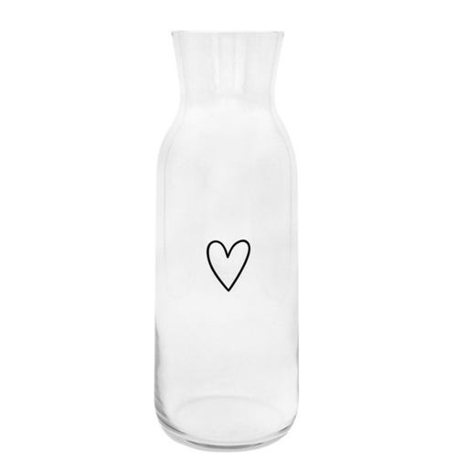 Die wundervolle Karaffe Herz ist ein tolles Highlight für deinen Esstisch. Ihr einzigartiges schwarzes Design an der Glaswand macht jedes Getränk zu einem Genuss. Du kannst sie als Wasser-, Saft- oder Milchkaraffe verwenden oder mit Blumen zu einer eleganten Vase umfunktionieren – ein vielseitiges und stilvolles Accessoire für jeden Anlass!