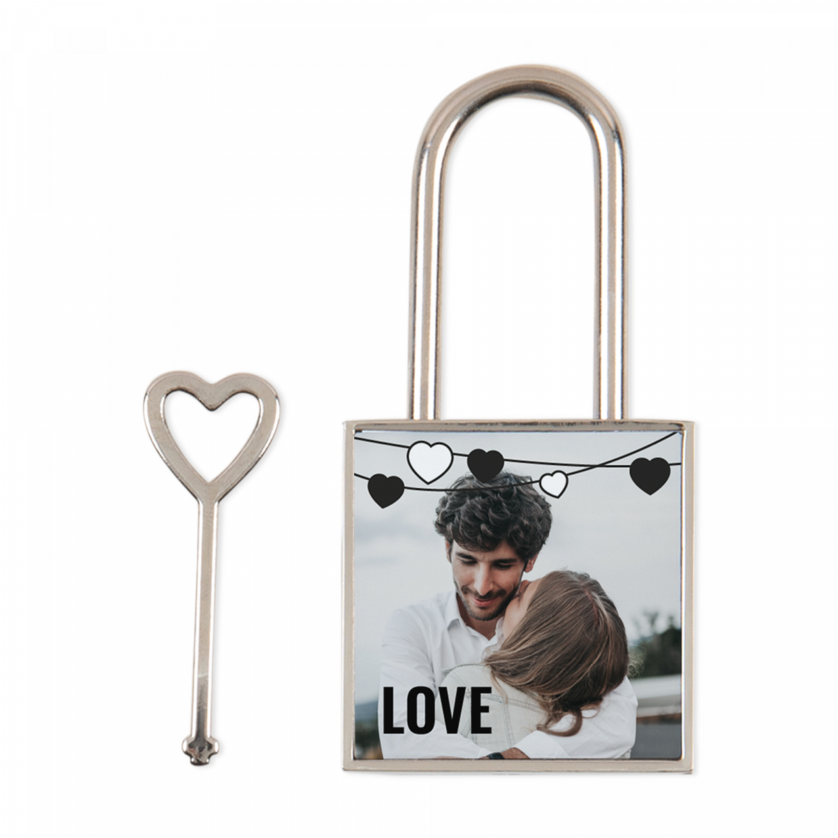 Personalisierbares Liebesschloss mit Foto Quadrat | Herzgirlande