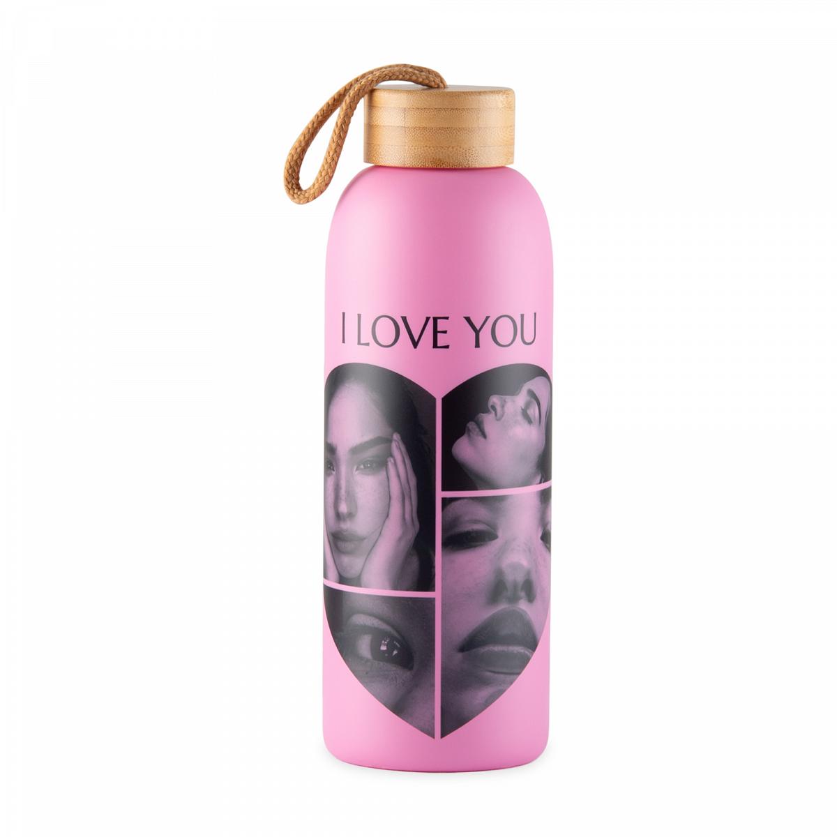 Personalisierbare Trinkflasche mit Foto 750ml Rosa | Herz Collage