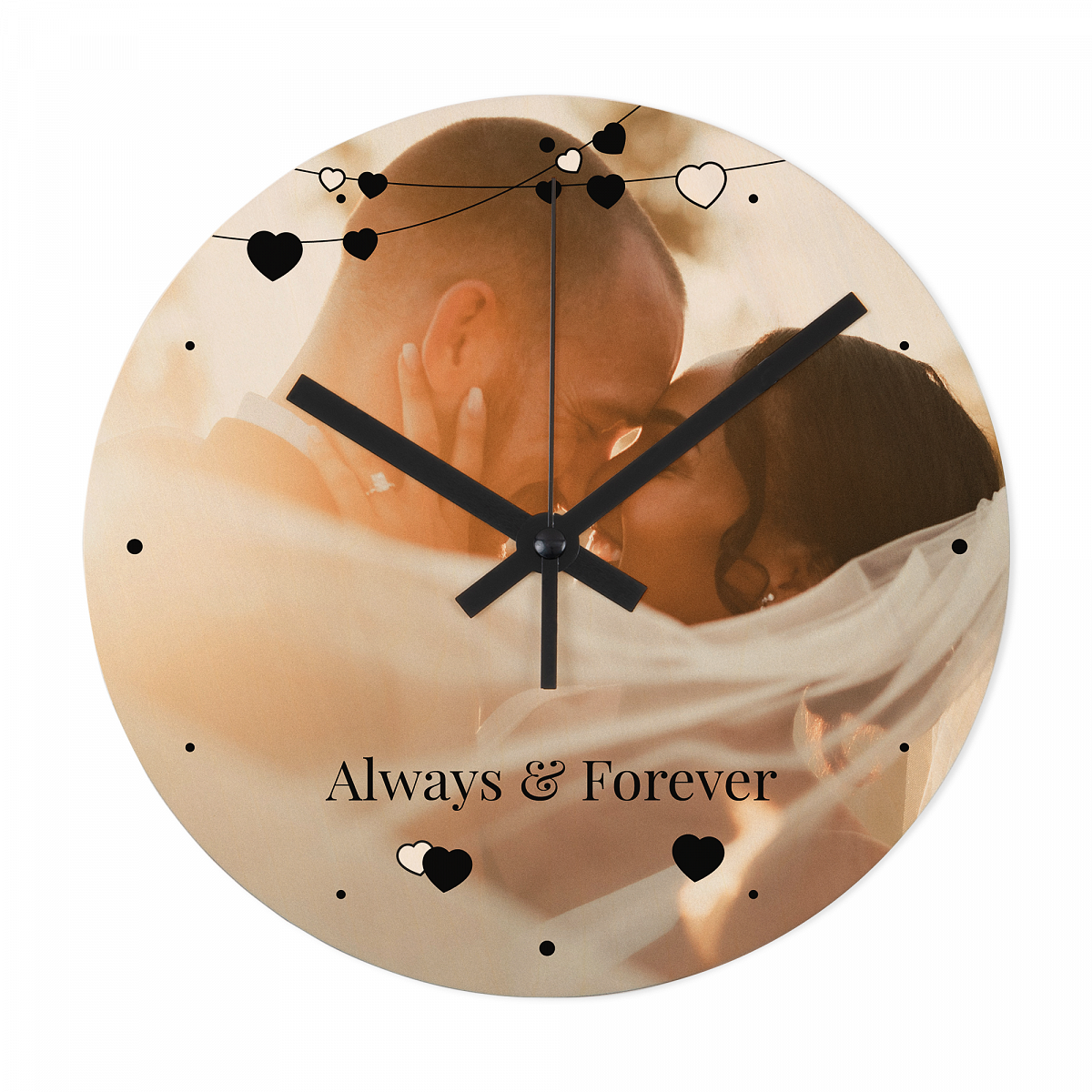 Personalisierbare Foto-Uhr aus Holz | Herzgirlande