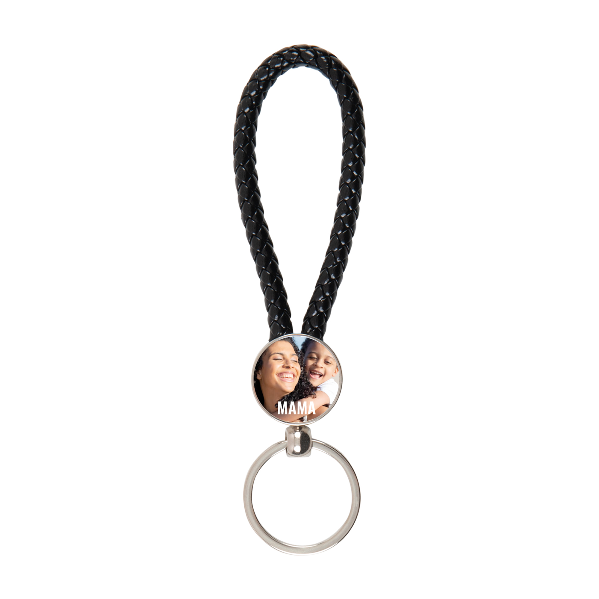 Personalisierbarer Zopf Schlüsselanhänger mit Foto schwarz | Design white