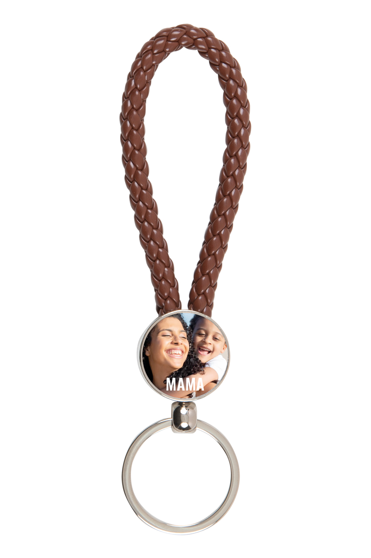 Personalisierbarer Zopf Schlüsselanhänger mit Foto braun | Design white