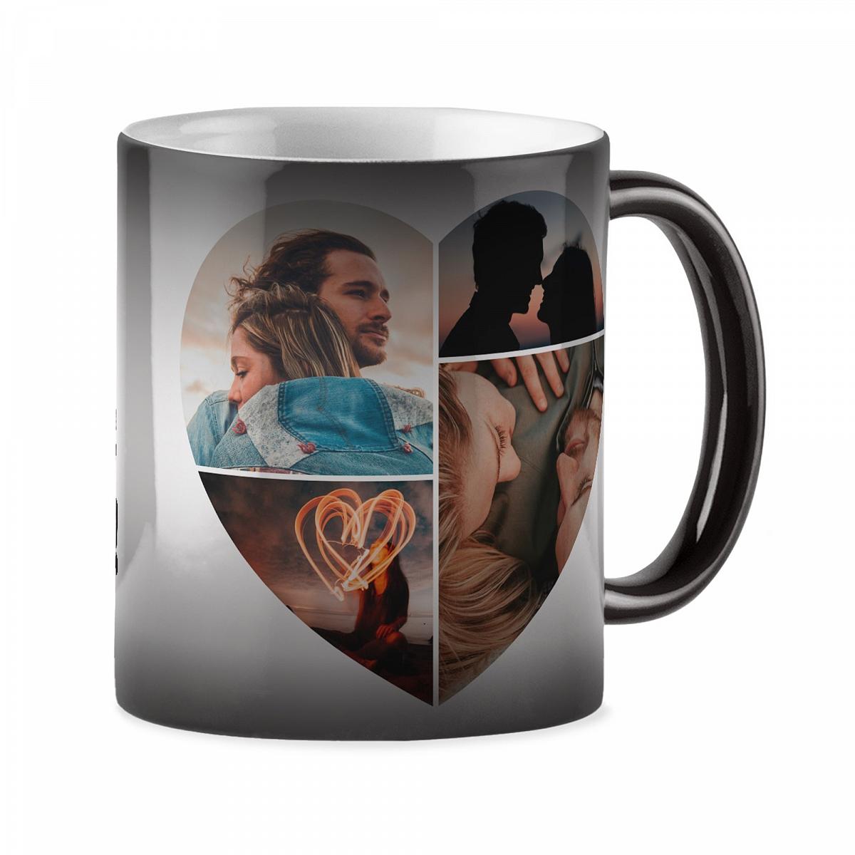 Personalisierbare Fotozaubertasse schwarz | Herz Collage