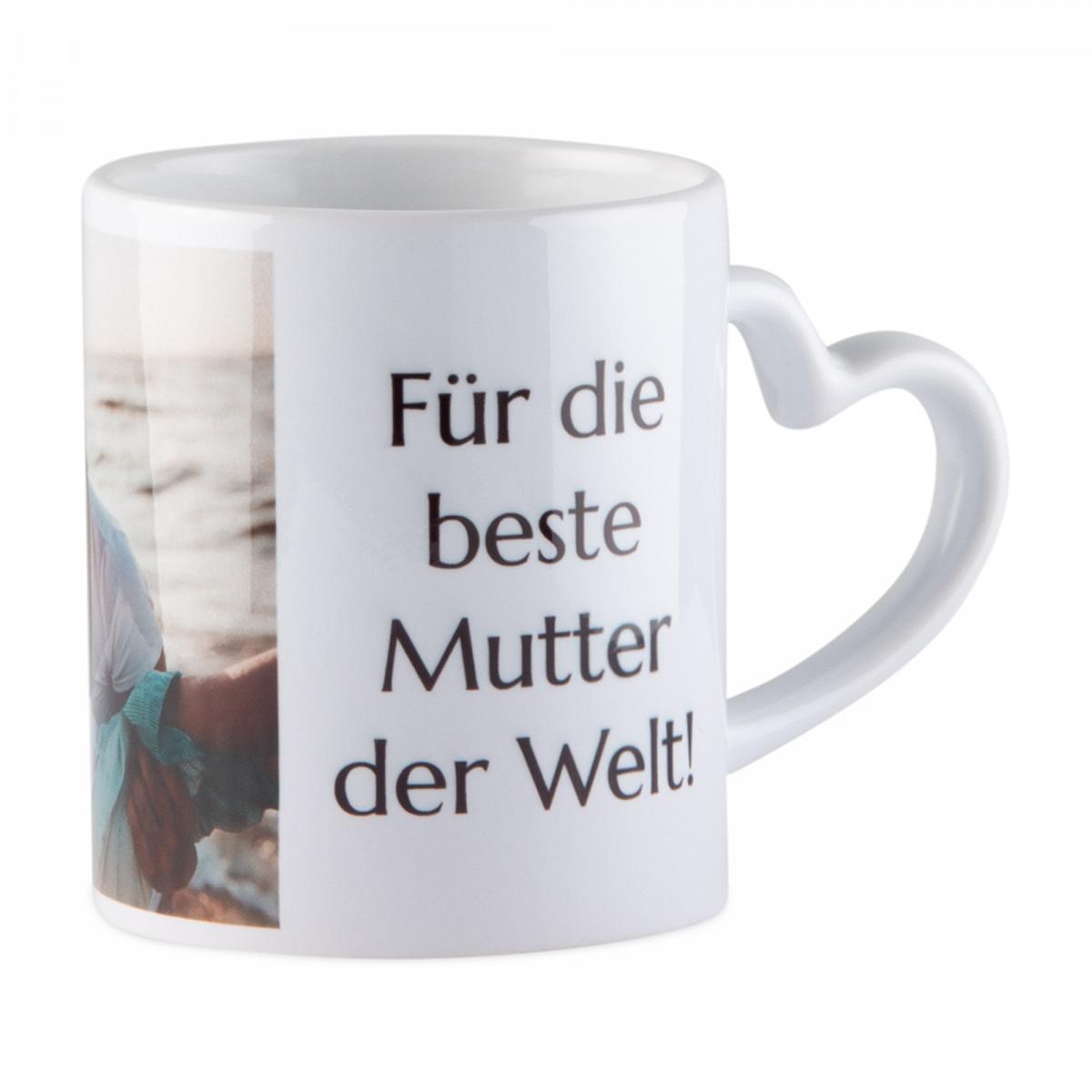 Diese Fototasse mit Herzgriff ist nicht nur ein wunderschöner Hingucker, sondern auch ein tolles Geschenk. Du kannst die personalisierbare Tasse selbst mit einem eigenem Foto gestalten. Die robuste Keramiktasse eignet sich perfekt für alle Heiss- und Kaltgetränke und beeindruckt mit ihrem glatten, leichten Material. Der herzförmige Griff liegt angenehm in der Hand. Diese personalisierte Tasse ist das ideale Geschenk für jeden Anlass, von Geburtstagen bis zum Valentinstag.