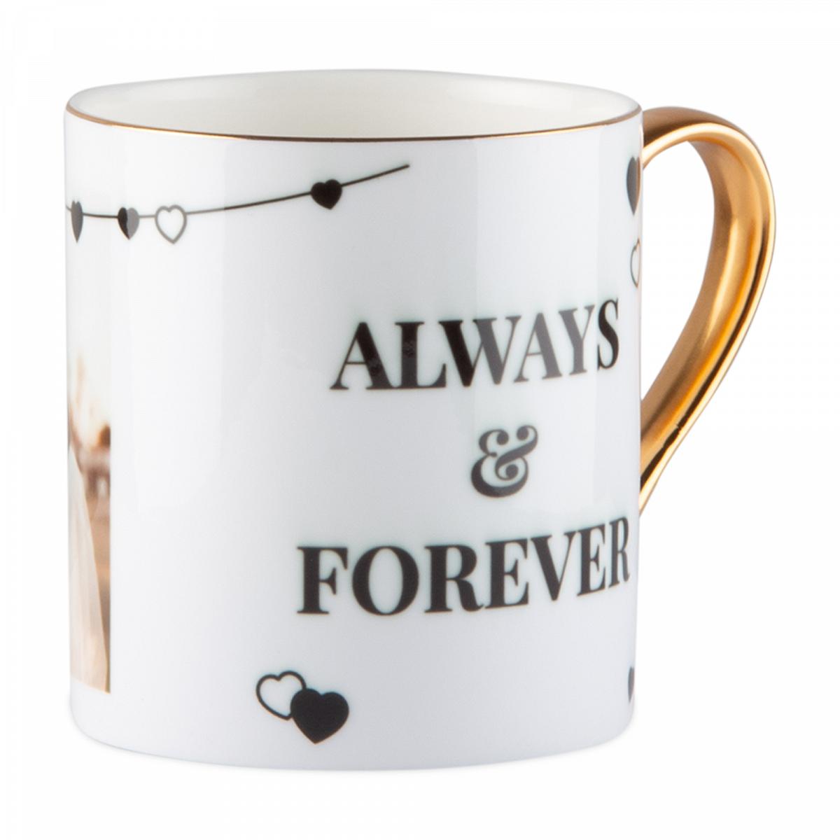 Personalisierbare Foto Teetasse mit Goldhenkel | Herzgirlande